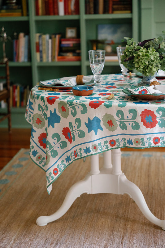 Blue Suzani Stripe Tablecloth